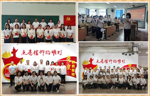 观看庆祝大会结束后,学院党总支开展“重温入党誓词 传承红色基因”为主题的党史学习教育实践活动。党总支书记赵慧宣读了学校“两优一先”表彰结果,并号召全体党员向“两优一先”楷模学习,切实发挥党员的先锋模范作用,将“服务师生、争优创先”落到实处。随后,开展为党员庆祝“政治生日”活动。赵慧书记、张万忠院长、林燕副书记为过政治生日的共产党员送上礼物与祝福,全体党员重温入党誓词。