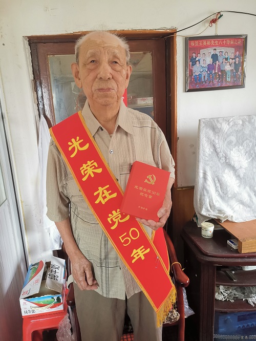 在离休老领导、老党员、老战士王英彬家中,刘铸书记为老领导佩戴了“光荣在党50年”纪念章和绶带。马丹凤处长为老领导送去了慰问品。王老激动地说:“我们永远牢记党的恩情,永远坚定的跟党走!作为一名老党员,我更要不忘初心、牢记使命,为我们党的事业奋斗终身!”