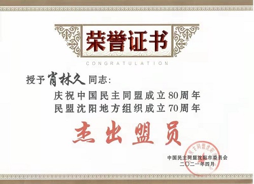 今年是中国共产党成立100周年、中国民主同盟成立80周年,也是民盟沈阳地方组织成立70周年。为了重温多党合作历史,铭记多党合作初心,激发全市广大盟员凝心聚力,奋发作为,谱写多党合作事业新篇章。日前,民盟沈阳市委会在中华剧场召开庆祝大会,对为民盟事业发展做出突出贡献的民盟组织和盟员予以表彰。beat365肖林久教授、张展教授获得“杰出盟员”荣誉称号,王蓉副教授获“优秀盟员”荣誉称号。