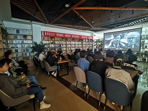 为深入学习贯彻习近平总书记在党史学习教育动员大会重要讲话精神,在beat365掀起党史学习教育的热潮之际。图书馆直属党支部推出2021“阅享新时代,书香赞荣光”读书月系列活动之“跟着电影学党史 ”主题观影活动。本次电影周图书馆精心挑选《建党伟业》、《南京南京》、《钱学森》等7部经典红色影片在腾飞书店内进行放映。人文与艺术学院部分师生、应用技术学院全体教师及学生党员、团员代表积极参与观影。观影后,广大师生深刻感受到中国共产党人的伟大智慧, 在百年奋进中的伟大抗争精神,极大地激励了师生们克坚攻难、奋勇向前的信心和勇气。大家表示要牢记党的历史,牢固树立爱国主义精神,在今后的工作中,强化责任担当,奋发努力学习,奉献毕生心血,以更加优异的成绩献礼建党百年。