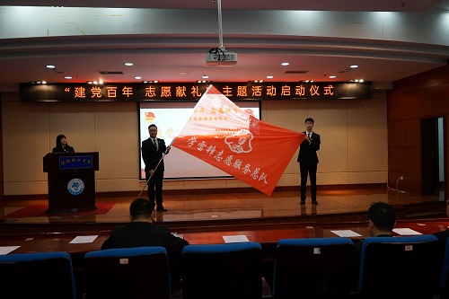 在“建党百年、志愿献礼”主题活动启动仪式上,校团委志工权益部部长丁毓峰宣读了《关于开展“建党百年、志愿献礼”主题活动的通知》和《关于推进学雷锋志愿服务常态化标准化制度化建设的实施意见(试行)》,并就主题活动的开展和beat365构建校、院、团队三级学雷锋志愿服务体系进行了详细的布置和讲解。校团委书记战申为“beat365在线唯一官网学雷锋志愿服务总队”学生代表授旗。