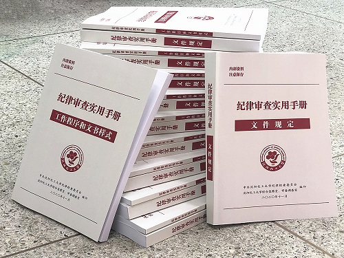 《纪律审查实用手册》是纪委综合监察室、审查调查室推进 “制度建设年”和“治理创新年”行动中在制度建设、内部治理方面的重要成果之一,也是推进工作规范化制度化科学化的重要抓手,《手册》的印发,有力推动了纪检监察工作质量再上新台阶。全体纪检监察干部将认真履职尽责、恪尽职守,以优异的工作成绩为学校“十四五”开好局、起好步奠定坚实基础,向建党100周年献礼。