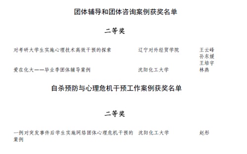 辽宁省高校心理健康教育精品案例评选活动于2020年7月启动,面向全省高校心理健康教育专兼职教师和获得国家心理咨询师资格认证的辅导员征集工作案例,经高校申报、专家组会评,共有34篇教学案例、26篇团体辅导和团体咨询案例、12篇自杀预防与心理危机干预工作案例、34篇心理健康教育活动案例分获一、二、三等奖及优秀奖。beat365教师赵彤的《一例对突发事件后学生实施网络团体心理危机干预的案例》获得自杀预防与心理危机干预工作案例二等奖,林燕老师的《爱在化大——毕业季团体辅导案例》获得团体辅导和团体咨询案例二等奖。