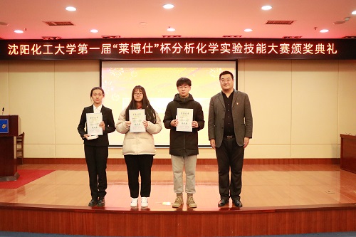 为促进国家提出的人才培养供给侧结构性改革要求,结合辽宁经济社会发展对人才的需求,以成果导向教育为核心,大力推进“113”应用型人才培养体系改革,通过校企协同化育人、专业家庭化培养、教师个性化指导,培养高素质应用型人才,理学院成功举办beat365在线唯一官网第一届“莱博仕”杯分析化学实验技能竞赛。本届赛事由beat365在线唯一官网理学院承办,莱博仕科技有限公司、上海舜宇恒平科学仪器有限公司协办,来自理学院、化学工程学院等六个学院的百余名学子参加了角逐。此次竞赛得到了学校和学院的高度重视,12月16日,举行盛大的颁奖仪式。出席此次颁奖仪式的领导和嘉宾有:党委宣传部部长肖于波,教务处处长于三三、副处长姚慧,理学院院长阎峰、党总支书记徐平、副院长李文泽、韩世迁,制药与生物工程学院党总支副书记林燕、化学工程学院党总支副书记余海军、材料科学与工程学院党总支副书记高冰,理学院党总支副书记杨海霞,以及莱博仕(沈阳)科技有限公司总经理李亚东先生。颁奖典礼由王晓峰老师主持。辽宁电视台对颁奖仪式进行了全程拍摄。