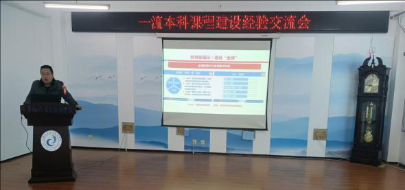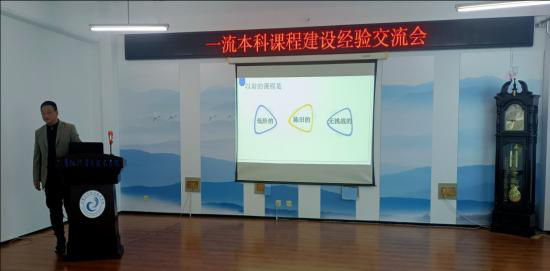 本次交流会由获得推荐省级一流本科课程建设的刘俊老师和李大舟老师进行经验介绍。刘俊老师结合自己本人20余年的教学经验,就为什么要建设一流本科课程、什么样的课程是“金课”,如何打造“金课”等方面展开了阐述,尤其着重介绍了如何评价课程目标、如何组织教学计划、如何修订成绩评价机制、教案如何设计等。李大舟老师则用幽默的语言详细解读了一流课程双万计划,分析了一流本科课程建设对于老师与学生的意义,明确了它对当代高校建设重要性与必要性。