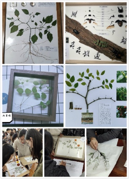 动植物标本大赛中,学生提交的参赛作品主要以植物标本和昆虫标本为主,通过标本采集与制作、展板的设计与制作、视频的录制与后期加工等方面对作品进行设计制作。各组选手为大家展示了活灵活现的作品,其中不乏山楂树、红枣树、银杏等木本植物标本,荠菜、龙葵、万寿菊等草本植物标本,以及蝎子、甲虫等昆虫标本。评委老师从操作的正确性、标本的完整性以及主题创新性为各参赛团队提供了专业的指导及建议。从查找信息资料到选取标本种类,从采集鉴定到反复处理,从设计到定型再到整体契合修正,参赛同学结合相关专业知识,对标本进行专业处理,解决相关问题,致力精益求精。经过选手汇报、作品展示和评委提问答辩三个环节的评审,从参赛的53项作品中,遴选出10项优秀成品报送至省赛。动植物标本大赛激发了大学生热爱自然、保护环境的热情,对培养学生标本制作能力、创新能力起到了提升作用。