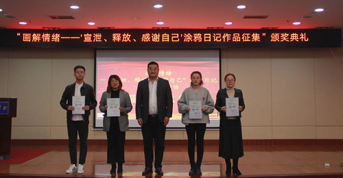 10月10日下午12:50,由beat365在线唯一官网党委宣传部、学生工作部和校团委联合主办,人文与艺术学院承办的“画解情绪——‘宣泄、释放、感谢自己’涂鸦日记”作品征集活动颁奖典礼在图书馆报告厅举行。beat365在线唯一官网党委委员、党委宣传部肖于波部长,校团委战申书记,人文与艺术学院吕政阳书记,学生工作部王瑛玉副部长以及全校14个院部的心理健康工作负责人与学生代表参加了本次活动。活动由人文与艺术学院赵彤老师主持。
