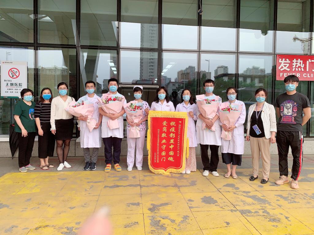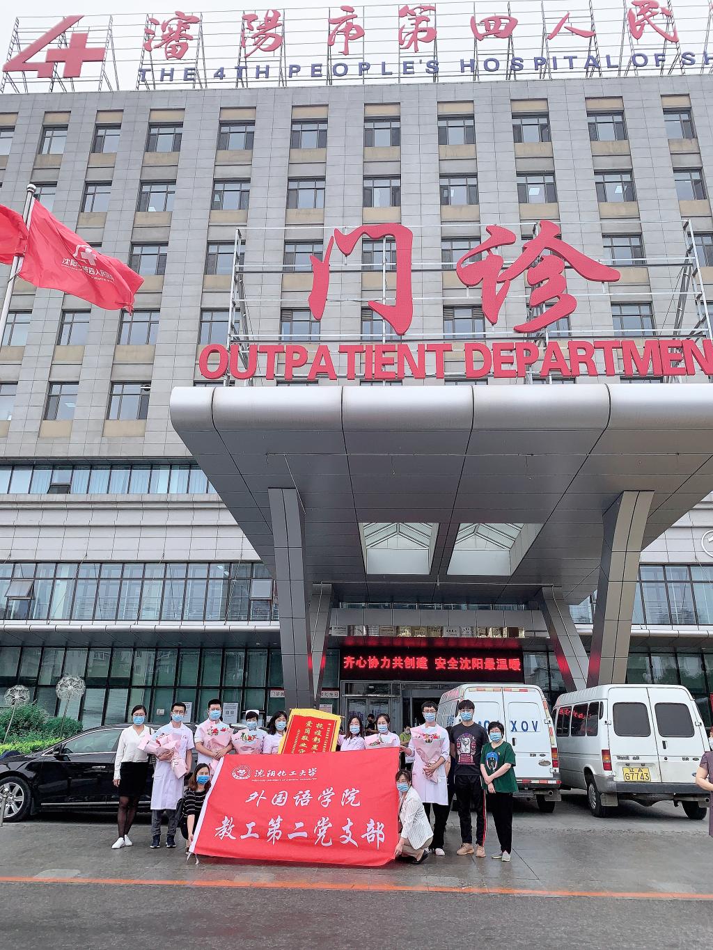 6月10日,教工第二党支部党员在支部书记李辉的带领下,来到沈阳市第四人民医院看望慰问自3月份起便一直在桃仙机场承担防疫工作任务的医护团队,并向他们敬赠了“抗疫彰显中国魂,爱国敬业守国门”锦旗和鲜花。他们之中有机场医生团队第一小组组长、肝胆外科医生褚佳欢;机场医生团队第二小组组长、麻醉科医生孙雪晨;医务科副科长、内科副主任医师田宏;急诊科护士李响;儿科护士周明慧;儿科护士代文文;护理团队小组长、手术室护士董鹏;妇科护士佀红俊;耳鼻喉科护士张云杰。他们舍小家为大家、识大体顾大局,经受住了面对复杂多变的疫情形势和超高的工作强度的严峻考验,圆满完成了各项工作任务,尽显白衣天使医者仁心、勇于担当的社会责任感。