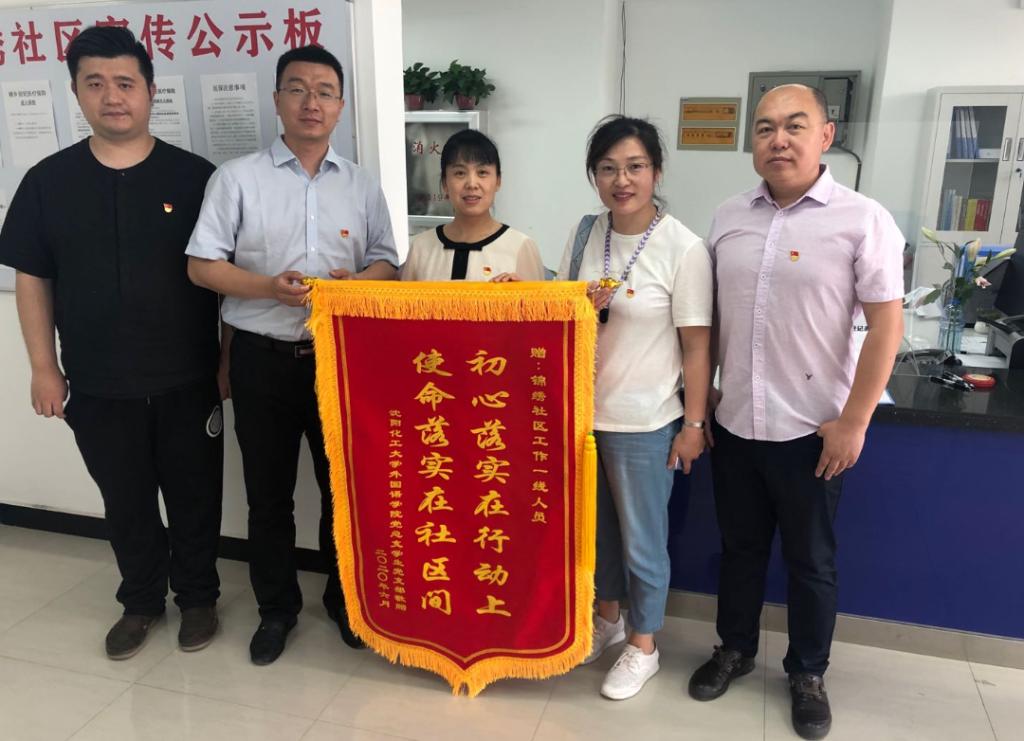 6月12日,外国语学院学生党支部部分在沈党员在党支部书记安羽白的带领下,来到沈阳市锦绣社区看望慰问疫情期间工作在社区一线的社区工作者们,并向他们敬赠了“初心落实在行动上,使命落实在社区间”的锦旗和鲜花。在走访慰问中,锦绣社区王婷书记向大家详细的介绍了疫情期间社区承担的防控、排查、宣传等各项工作。作为社区一线工作者,她们加大排查力度,做好外地回家过年人员的摸排登记工作以及病例排查工作,及时识别可疑病例;在辖区内大力开展环境整治活动,切断疾病传播途径,消除病毒传播隐患;强化宣传教育,不断加强正面引导,做到群防群控,确保风险降到最低。她表示,锦绣社区的工作人员自从开展疫情防控工作以来,没有休息过一天,就算是大年三十也工作在社区一线,面对复杂多变的疫情形势和超高的工作强度,他们舍小家为大家,经受住各种严峻考验,圆满完成了各项工作任务。