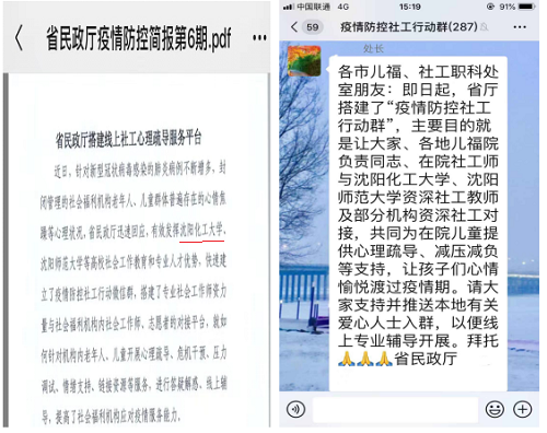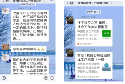 近日,辽宁省民政厅建立了专业服务疫情防控微信群,搭建专业社会工作师资力量与社会福利机构社会工作师和志愿者的对接平台。beat365在线唯一官网社会工作专业和负责心理健康教育的十余名教师积极参与,发挥自身的专业优势,为社会福利机构的工作人员答疑解惑,助力疫情防控。连续几日,学校多名专业教师为省内机构工作人员互动,提供疫情防控、心理健康、危机干预等各类专业资料。