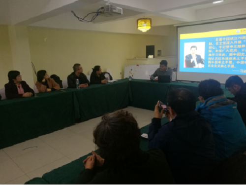 校党委统战部部长肖于波为盟员们做了题为《重温红色历史 感悟红色精神》的主题报告。肖部长首先从“追寻足迹、回顾历史留下的红色精神”方面为盟员们介绍了什么是红色精神,如不怕艰难险恶的长征精神,改变作风、提高素质的延安精神,军民团结、艰苦奋斗的井冈山精神等等。接下来,肖部长从“感悟历程、体会什么是红色精神”方面为大家详细解读了红色精神的内涵。