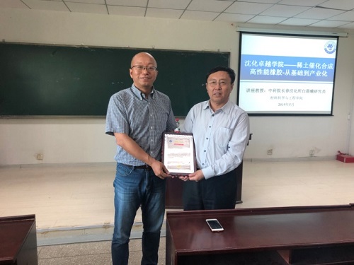 5月23日,“沈化卓越学院”讲座—“稀土催化合成高性能橡胶-从基础到产业化”在致本楼B座213学术报告厅隆重举行。中国科学院长春应用化学研究所研究员、高性能合成橡胶及其复合材料重点实验室主任白晨曦研究员受邀作学术报告。讲座由材料科学与工程学院院长方庆红教授主持。