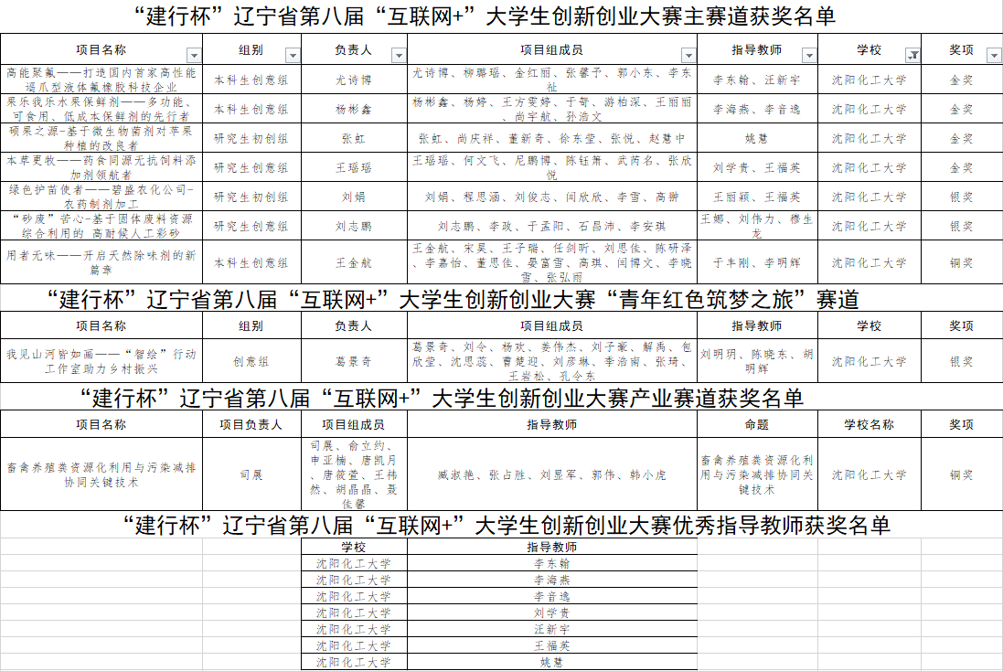 近日,辽宁省建行杯第八届 “互联网+”大学生创新创业大赛圆满闭幕,经过激烈角逐,beat365参赛项目在省赛中荣获金奖4项、银奖3项、铜奖2项的优秀成绩,李东翰、李海燕、李音逸、刘学贵、汪新宇、王福英、姚慧老师被评为优秀指导教师。