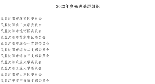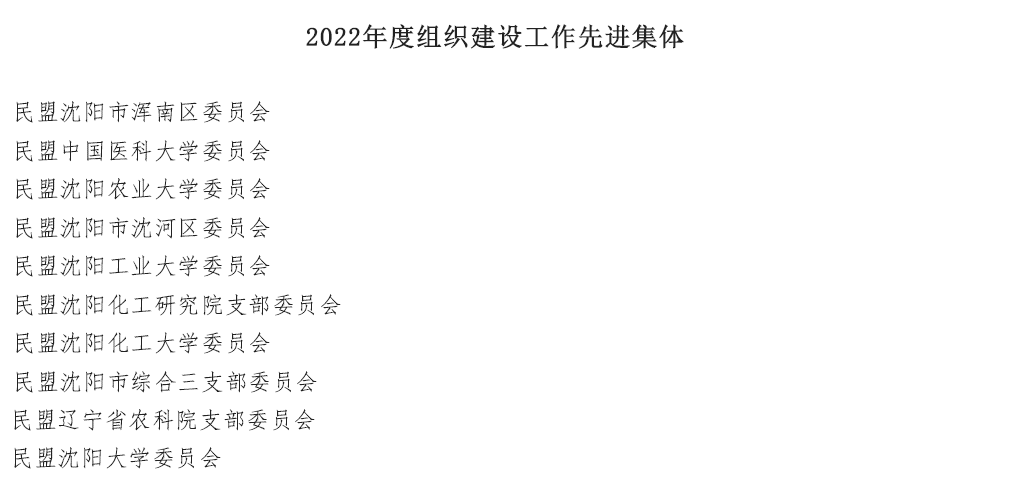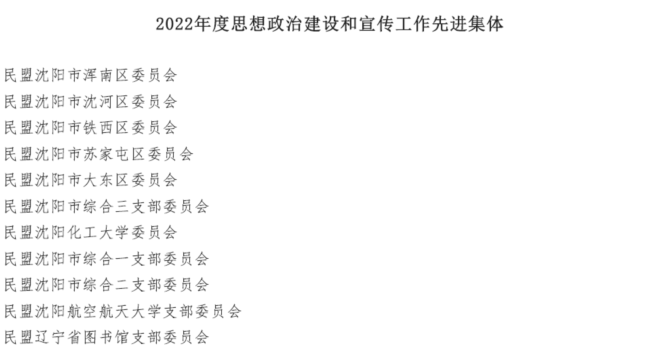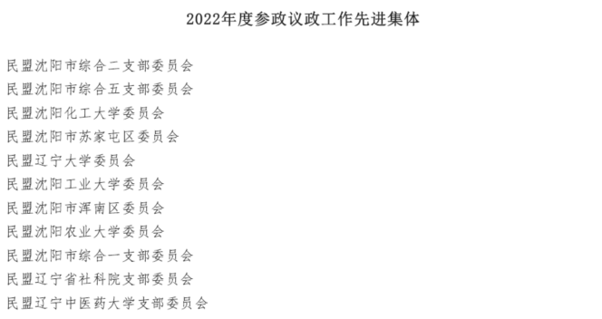 近日,民盟沈阳市委对2022年各项工作取得突出成绩的基层组织、专委会和在盟务工作中表现突出的盟员进行表彰。授予民盟beat365在线唯一官网委员会 “先进基层组织”、“思想政治建设和宣传工作先进集体”、“参政议政工作先进集体”和“组织建设工作先进集体”四个荣誉称号。