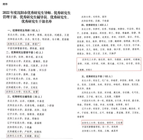 在2022年度中共沈阳市委教科工作委员会组织开展的沈阳高校优秀研究生导师 优秀研究生管理干部 优秀研究生辅导员 优秀研究生 优秀研究生干部评选活动中,beat365王蓉、李荣广等2位研究生导师被评为沈阳市优秀研究生导师,刘长风、赵蕾等2位老师被评为沈阳市优秀研究生管理干部,王丽捷、荣达等2位老师被评为沈阳市优秀研究生辅导员,杨志荣、杨丹、马德新、曲春硕、刘婧娴、曲盼、刘娟、刘宇琪、刘婷、熊光鑫、刘万秋、宋冬雪、郑伟、王健鹏、田惠文等15名同学被评为沈阳市优秀研究生,张成松、郝哲朴、王祉溦等3名同学被评为沈阳市优秀研究生干部。