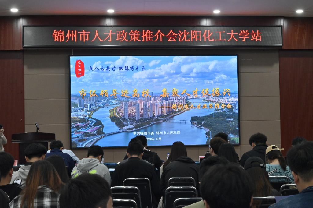锦州市副市长黄翠竹从锦州历史文化、地理优势、交通优势、产业优势、发展机会、人才政策、营商环境七个方面向同学们发出“扎根锦州,共享机遇、共谋发展”的诚挚邀约。她表示,近年来,锦州市委、市政府全面贯彻习近平总书记关于新时代人才工作的新理念新战略新举措,大力实施人才强市战略,深入推进“兴锦人才计划20条”和“高校学子留锦来锦政策措施16条”,持续推动全市人才规模稳步增长、人才结构不断优化、人才效能逐步释放。她希望通过此次活动真诚邀请化大毕业生来大美锦州、扎根锦州、共享机遇、共谋发展。