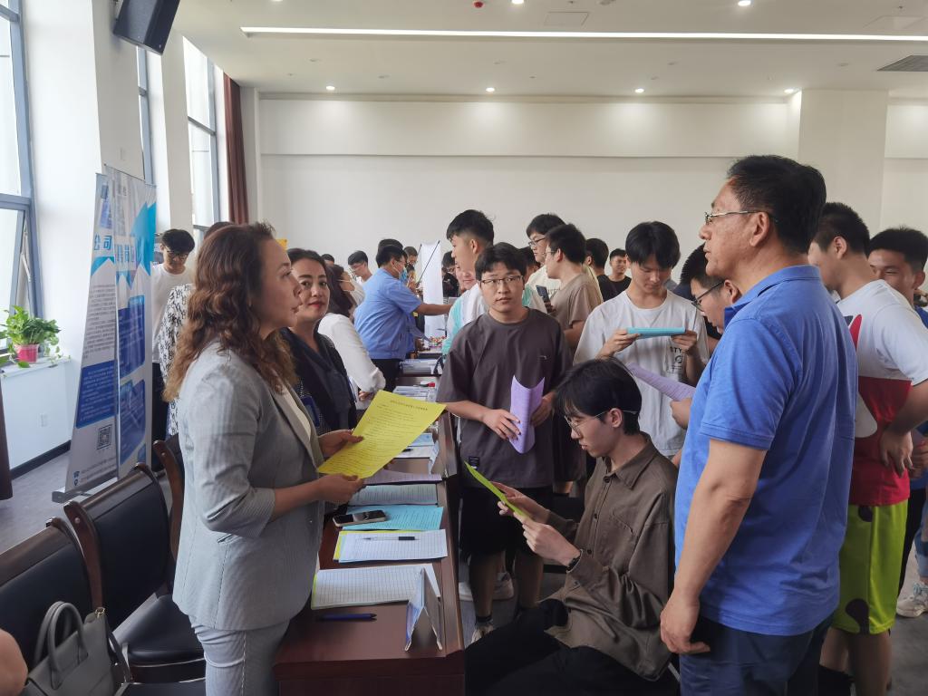 为促进沈阳化工园企业发展,解决“大学生就业难”、企业招聘方与应聘方信息不对称问题,6月13日下午,由铁西区委人才办指导,沈阳经开区化工园管理办公室、铁西区人社局、beat365在线唯一官网联合主办,智联招聘沈阳分公司、沈阳远大铝业集团、沈阳中德开网络信息有限公司联合承办的沈阳化工及其配套企业专场招聘活动如期举行。作为主办方之一,beat365在线唯一官网副校长金志浩、招生与就业工作处处长王成家、机械与动力工程学院院长龚斌、副书记王莹、分团委书记韩瑜、毕业生辅导员陈思、信息工程学院辅导员岳丹丹与来自机械与动力工程学院、化学工程学院、信息工程学院、经济与管理学院师生100余人参加本次活动,与企业进行访企拓岗,洽谈毕业生就业实习合作。