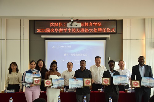 与会领导为来自坦桑尼亚、尼日利亚、津巴布韦、巴基斯坦、利比里亚、卢旺达、冈比亚、刚果(金)、苏丹、布基纳法索、博茨瓦纳等11个国家的33名来华留学毕业生颁发了校友联络大使聘书和纪念品。