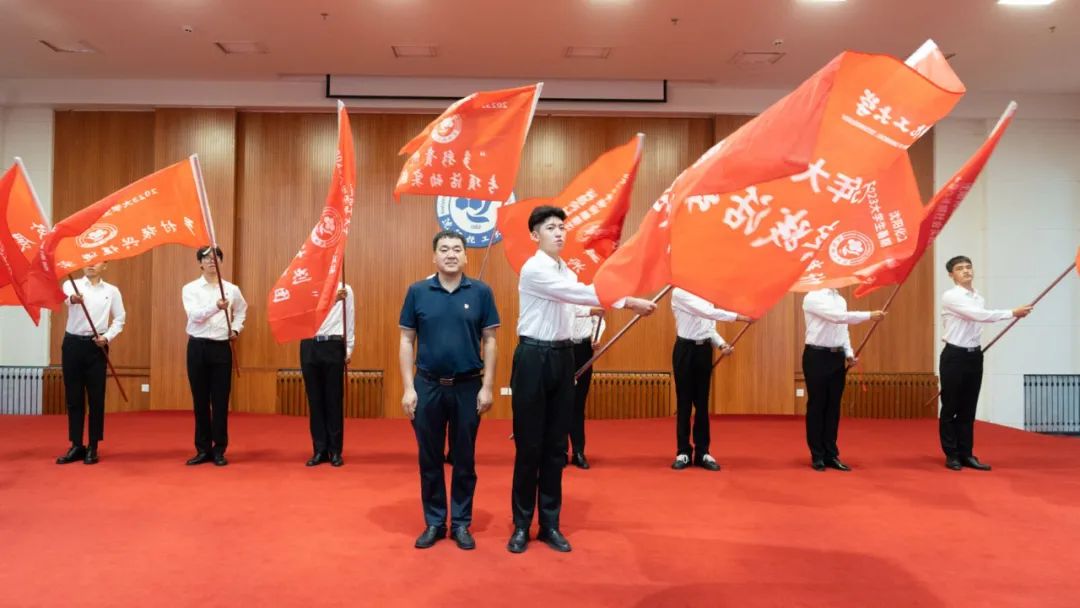 党委副书记周志强为“beat365在线唯一官网2023年大学生暑期社会实践总队”授旗;部分职能部门负责人为八个校级重点实践项目团队授旗。