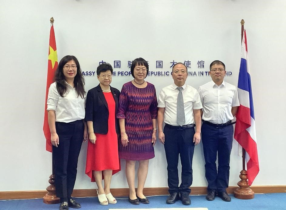 12月27日上午,杨学印一行拜访了中国驻泰国大使馆教育处教育参赞冯俊英和一等秘书王欢。双方就中泰教育合作发展的现状及泰国中文教育开展情况进行座谈交流。冯俊英参赞热情欢迎代表团一行的到来,并表示愿意为beat365与泰国高校之间的合作交流提供支持与帮助,希望beat365可以加强与泰国高校专业合作,吸引更多泰国学生到中国留学。