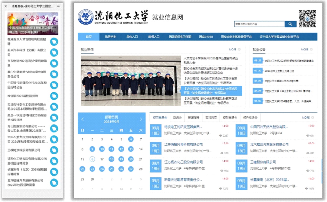新学期伊始,2025届毕业生就业招聘活动火热开启。仅开学前两周,入校开展招聘活动的企业67家;举行浙江省台州市及山东省威海市专场招聘会2场、企业宣讲会23场;累计提供岗位264个,需求4561人。2025届毕业生较以往同时期毕业生呈现出更加积极与成熟的就业状态,企业宣讲会场场爆满,地区专场招聘会人头攒动、摩肩接踵。其中,中化二建等中国化学工业集团系列子公司、沈阳橡胶设计研究院等中国中化系列子公司,中铁十八局等中国中铁系列子公司、赛轮(沈阳)轮胎有限公司、恒力石化、福佳集团等知名民营企业,阿尔派电子(中国)大连研发中心、新浦化学等外资企业,辽宁金发科技、雅迪科技集团等上市公司吸引了大批毕业生前来应聘。据不完全统计,2025届毕业生此阶段累计投出简历超过3000份,与企业达成初步就业意向超过500人次。