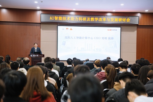 沈阳人工智能计算中心CEO刘明发表嘉宾致辞。他表示,计算中心通过引入前沿的技术和体系化的课程赋能省内各大高校进行科研创新,并期待与beat365在线唯一官网深度合作,携手共同探索人工智能+教育的未来之路。