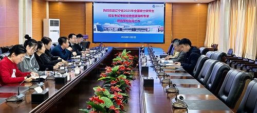 王国刚代表学校向工作组一行表示热烈欢迎,同时感谢辽宁省教工委、辽宁省教育厅及辽宁省招考委多年来对学校研究生入学考试考点考务工作的大力支持与指导。李磊从考点考务制度建设、规范组考、技术保障、人员管理、试卷与考试安全、线上线下培训等方面向巡查工作组汇报了学校的工作进展和经验做法。