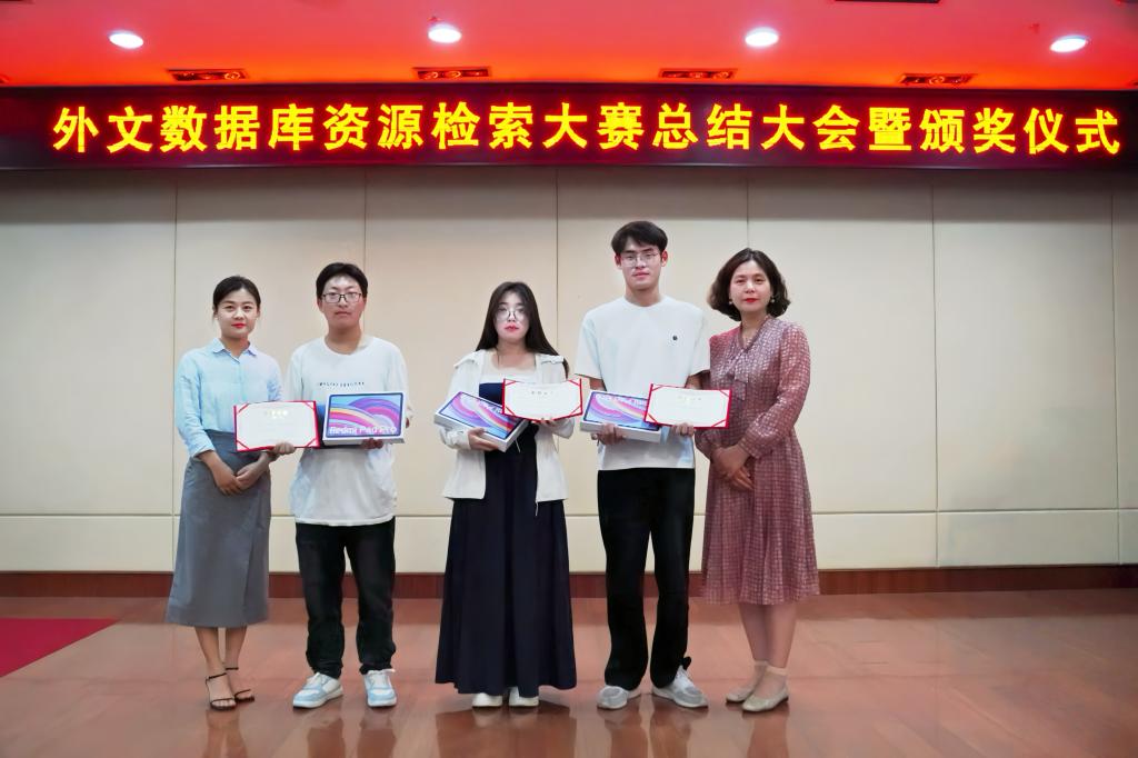 6月6日,本次大赛的技术支持国道数据库张珊经理与图书馆直属党支部书记赵霜霜在图书馆学术报告厅为beat365获奖学生颁奖。包括国道数据库在内,beat365拥有电子文献数据库27个,纸质文献资源143万余册,丰富的文献资源为师生教学科研提供了充分的保障。未来,化大图书馆将持续深化信息素养教育,帮助更多学生掌握信息检索“金钥匙”,欢迎广大读者积极参与数据库检索培训及各类竞赛,不断提升文献检索能力,在海量信息中精准挖掘知识宝藏,为学术探索与创新发展注入源源不断的动力。