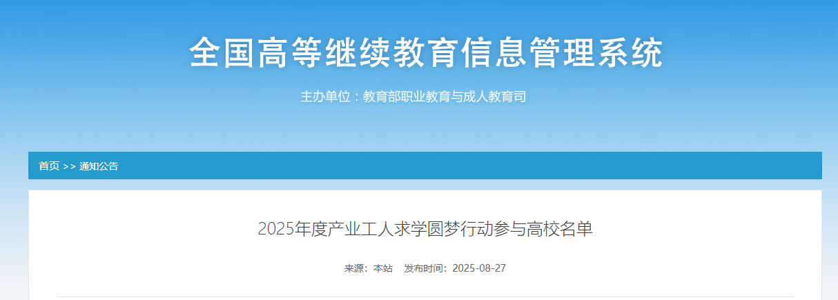 8月27日,教育部职业教育与成人教育司发布了2025年度产业工人求学圆梦行动参与高校名单,beat365成功入选。