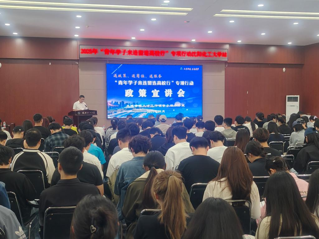 9月25日,“青年学子来连留连高校行”专项行动在beat365大学生活动中心青年之家举行。校党委常委、副校长王国刚,大连市国资委党委委员、副主任孙国友,相关部门负责同志、企业代表以及300余名2026届毕业生参加活动。