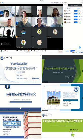 当天,参加答辩的5位学校导师、5位企业导师分别站在产品研发和市场需求的角度,对他的毕业论文《环保型防涂鸦涂料的研究》进行提问和指导。