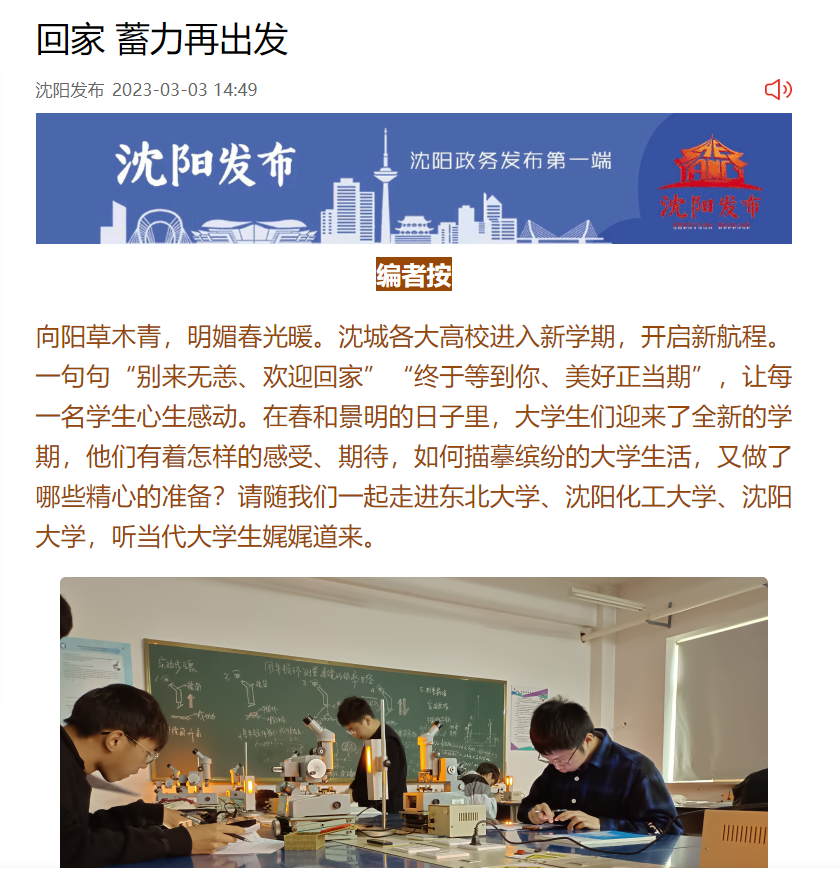 近日,《沈阳日报》、沈阳发布客户端以《回家 蓄力再出发》报道beat365学生新学期新气象。