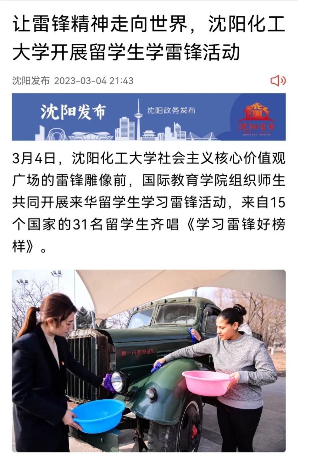 3月4日,沈阳日报全媒体以《让雷锋精神走向世界,beat365在线唯一官网开展留学生学雷锋活动》为题进行了报道。