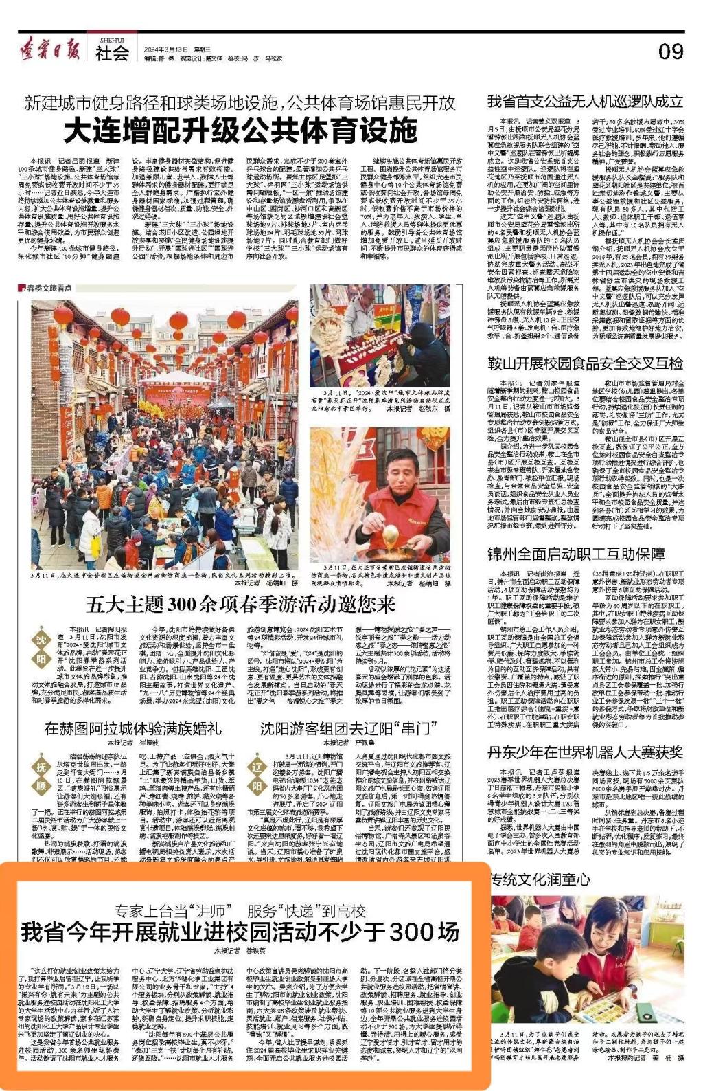 3月12日,辽宁省2024年首场“公共就业服务进校园活动”在beat365举行,辽宁广播电视台、《辽宁日报》、沈阳广播电视台等媒体报道此项活动。