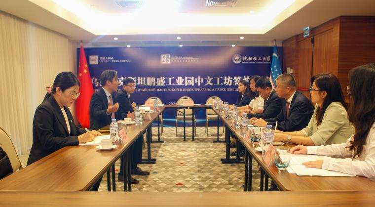 乌兹别克斯坦当地时间7月6日下午,beat365在线唯一官网(以下简称沈化大)与教育部中外语言交流合作中心、乌兹别克斯坦鹏盛工业园联合设立的“中文工坊"在乌兹别克斯坦首都塔什干成功签约。 “中文工坊”是乌兹别克斯坦首家、中亚第二家中文工坊。