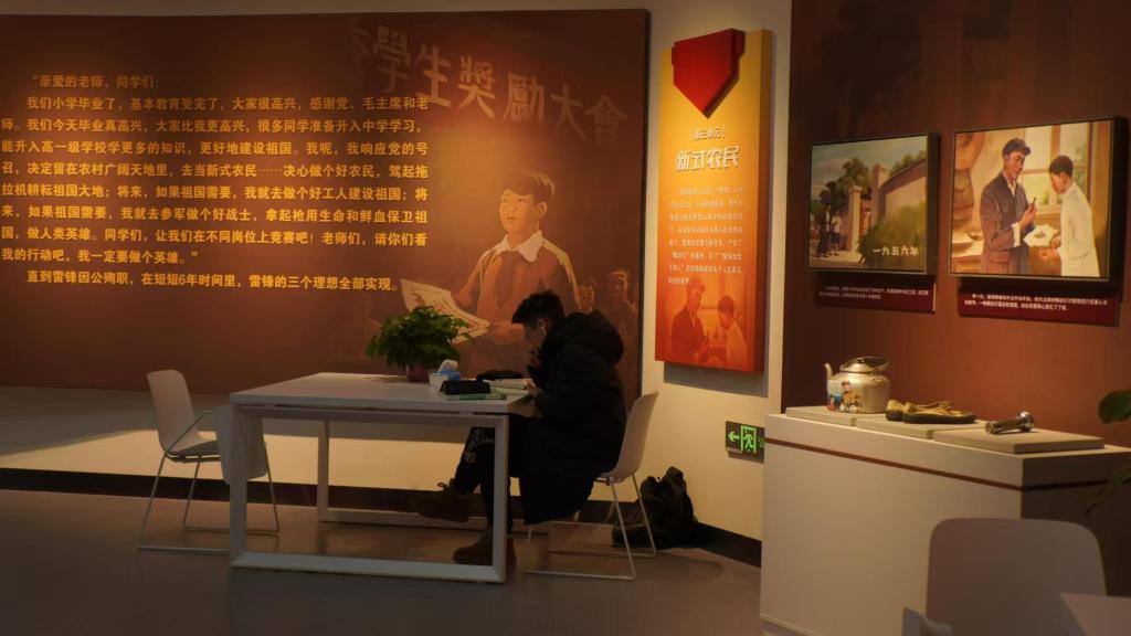 一进入展厅,映入眼帘的是一尊高2.2米的汉白玉雷锋同志塑像,象征着他短暂而永恒的22岁。陈展面积3500平方米,展示与雷锋有关的藏品2100余种,11000余件,2019年在校党委的倡导下,开展了“重走雷锋路”活动,于是就有了这样一份有着深远意义的特殊展品。
