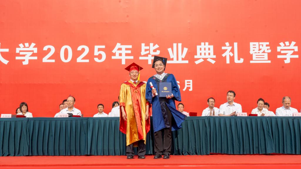 许光文为2025届毕业生代表颁发毕业证书,拨苏正冠、授予学位