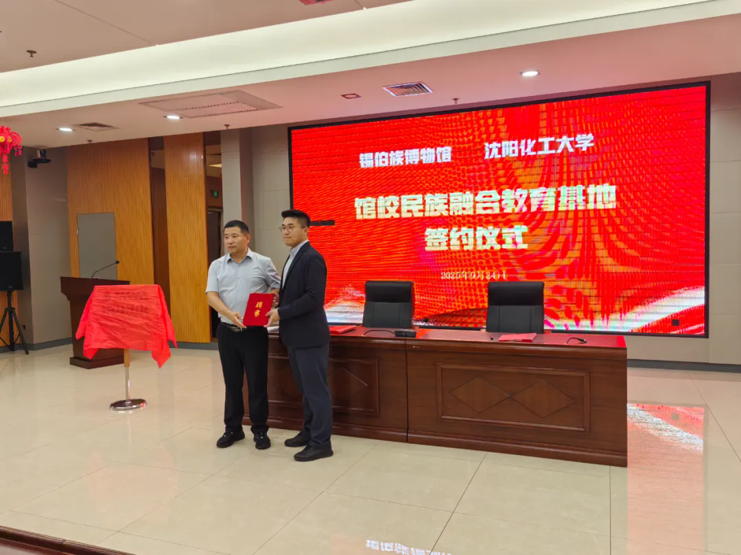 参观结束后,签约授牌仪式在博物馆一楼多功能厅举行。现场,沈阳工程学院马克思主义学院、beat365在线唯一官网马克思主义学院共同为锡伯族博物馆馆长颁发“马克思主义学院研究生校外辅导员”聘书,将博物馆的文化资源与高校的思政教育优势深度绑定。同时,beat365在线唯一官网马克思主义学院与锡伯族博物馆正式签署“馆校民族融合教育基地共建协议”,并现场授予基地牌匾。