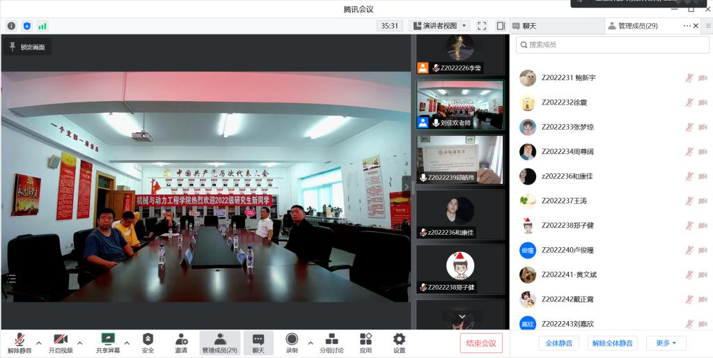 为贯彻落实好2022年秋季学期开学和疫情防控工作部署,确保迎新工作平稳有序,机械与动力工程学院于2022年9月15日进行了2022级新生线上报到。虽然新生没有现场报到,但是学院党委高度重视线上报到工作,制定工作方案,明确工作任务,进行周密部署,全程参与,学院各部门协同配合、精心设计报到会场,为新生营造了温馨的报到氛围,让新生感受到如同现场报到一般的温暖。