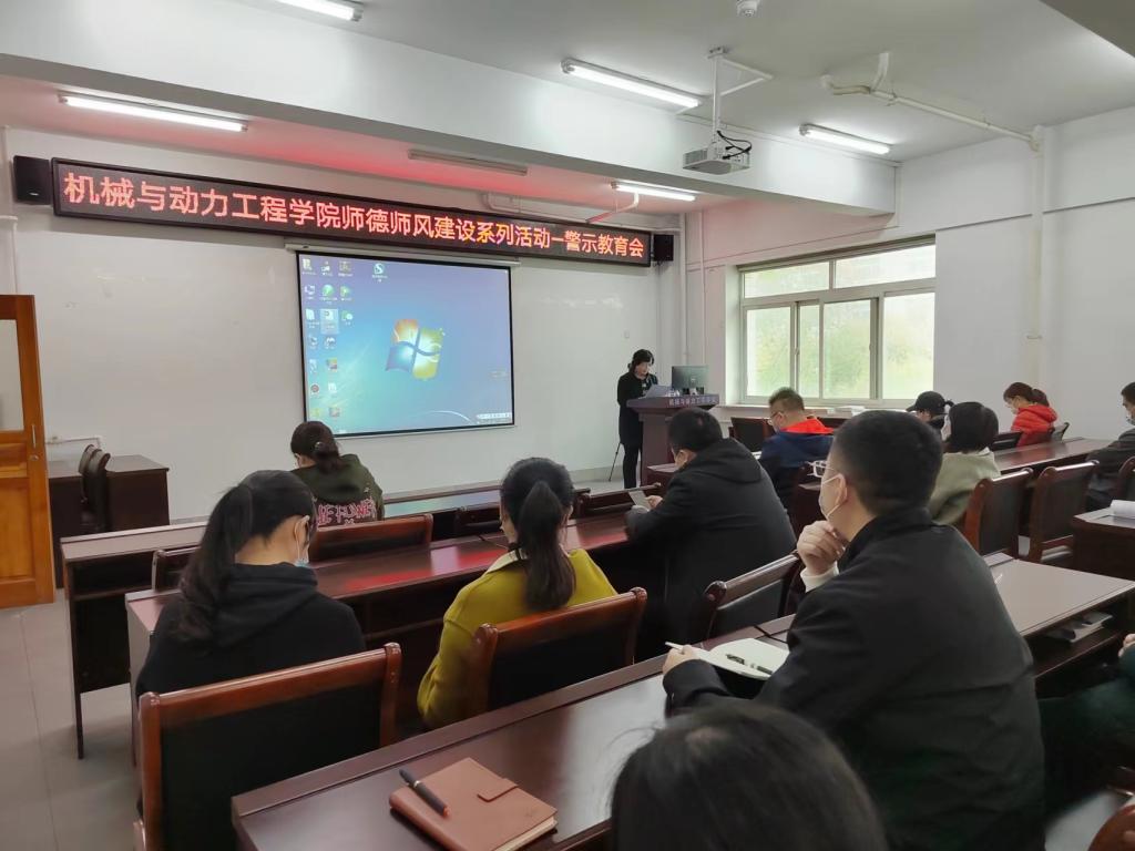师德师风建设系列活动之三是警示教育大会。11月2日,机动学院党委召开了师德师风“警示教育大会”,机动学院全体教职工参加会议。警示教育大会由党委书记付广艳教授主持。会议通报了教育部教师工作司汇编的违反高校教师职业行为十项准则典型案例10例,开展警示教育,以案明纪。同时又以发生在学校的两起教师违纪案例为鉴,开展警示教育,用身边事,教育身边人。要求学院教职工、党员干部要从上述案件中吸取教训,引以为戒,警钟长鸣。不断加强政治理论学习,加强品德修养和自我约束,履行好教书育人的神圣使命,树立良好师德师范,做优良师德师风的弘扬者和践行者。