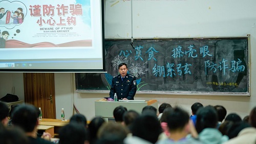 代所长为同学们详细介绍了五种常见诈骗骗局,分别是冒充熟人借钱;冒充公安局、检察院、法院人员;冒充银行工作人员;网上购物退款;二维码内植入木马。他强调,诈骗手段多样化,让人防不胜防,同学们唯有增强防骗意识,切记不要贪小便宜,遇到紧急情况不慌张,要第一时间拨打110或者联系老师、家长寻求帮助。