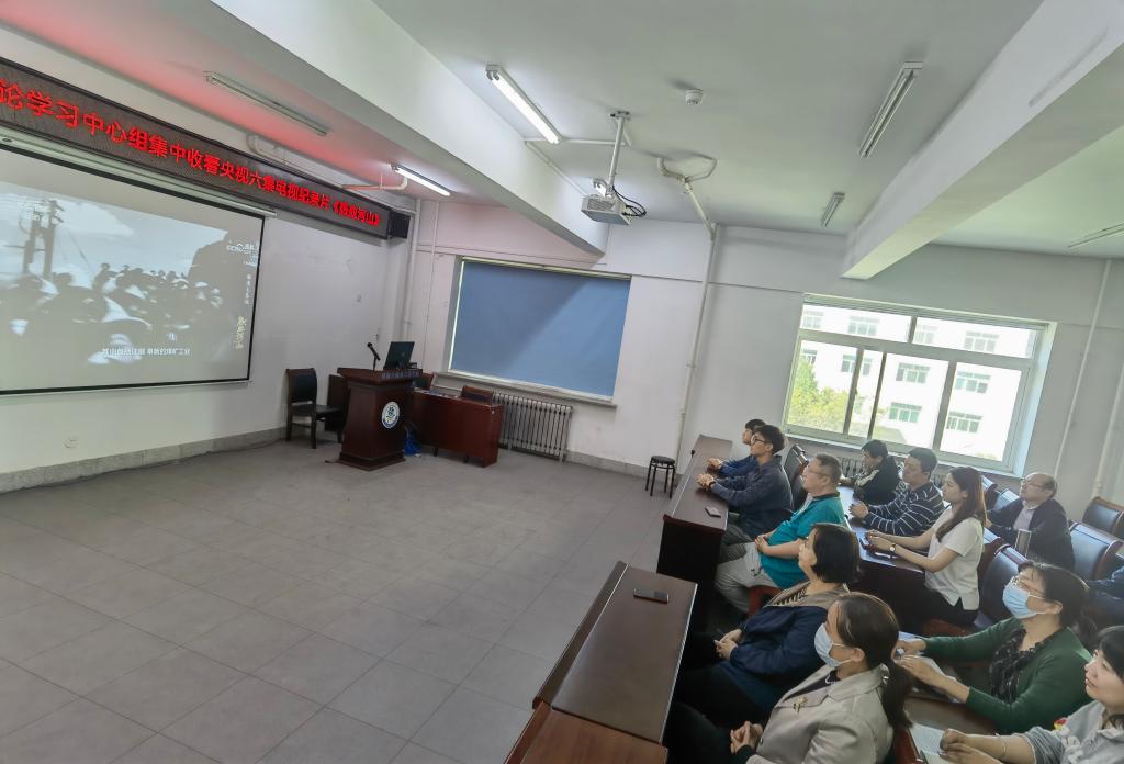 为深入学习党的二十大精神和习近平总书记视察辽宁时的重要讲话精神,贯彻落实习近平总书记关于“要讲好党的故事、革命的故事、英雄的故事,把红色基因传承下去,确保红色江山后继有人、代代相传”的重要指示精神,深入阐释辽宁“六地”的丰富内涵和时代价值,5月9日,机械与动力工程学院党委将央视电视纪录片《热血河山》作为学习贯彻习近平新时代中国特色社会主义思想主题教育的理论学习素材,组织理论学习中心组成员及学生副书记等27名同志集中收看了由辽宁省委宣传部、中央广播电视台等单位联合摄制的纪录片《热血河山—锻造大基地》。