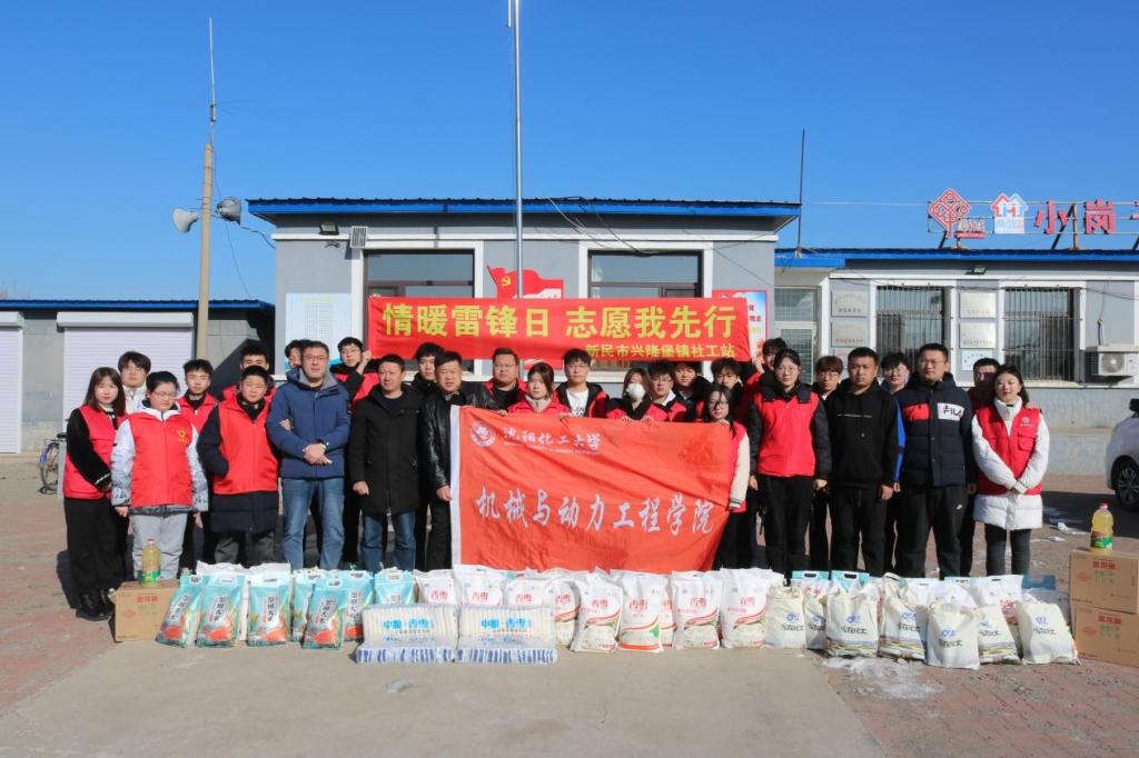 机械与动力工程学院开展“情暖雷锋日 志愿我先行”志愿服务活动。机械与动力工程学院志愿者随着新民市民政局低保科科长、安和社会工作服务中心负责人、社工王帆、鄂冰冰、辽宁省外国语协会副会长,为村里的20户低保户送去了米、面、油、挂面等生活物品。