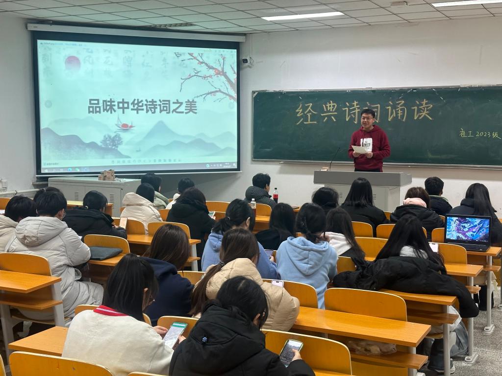 为引导广大青年从五千年中华传统文化中汲取养分,自觉传承弘扬中华优秀传统文化,铸牢中华民族共同体意识,上好“开学第一课”,2024年春季新学期,人文与艺术学院2021、2022、2023级社会工作专业本科生在教室、在各校园文化广场等场所,开展“道中华之美 美中华之道”中华经典诵读分享。
