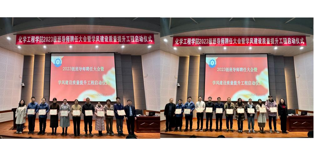 为全面落实立德树人根本任务,提高人才培养质量,营造积极浓厚的学习、学术氛围和生动活泼、健康上进的良好风气,化学工程学院于3月27日在碧帆楼304室举行2023级班导师聘任大会暨学风建设质量提升工程启动仪式。学院领导班子成员、教研室主任、2023级新任班导师、全体辅导员和学生代表400余人参加会议。会议由学院团委书记、2023级辅导员王博主持。