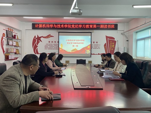 4月23日,计算机科学与技术学院党委举行党纪学习教育第一期读书班暨理论学习中心组专题学习会议。会议主题是深入学习贯彻中央、省委和学校党委有关党纪学习教育精神要求,认真学习领会新修订的《中国共产党纪律处分条例》,引导全体党员、干部进一步强化纪律意识、加强自我约束、提高免疫能力,始终做到忠诚干净担当,为助力辽宁全面振兴新突破三年行动、推动学院事业高质量发展提供坚强保障。学院党委书记王菲主持读书班并讲话,王军等六名党委委员出席会议,学院主管教学副院长张波列席会议。