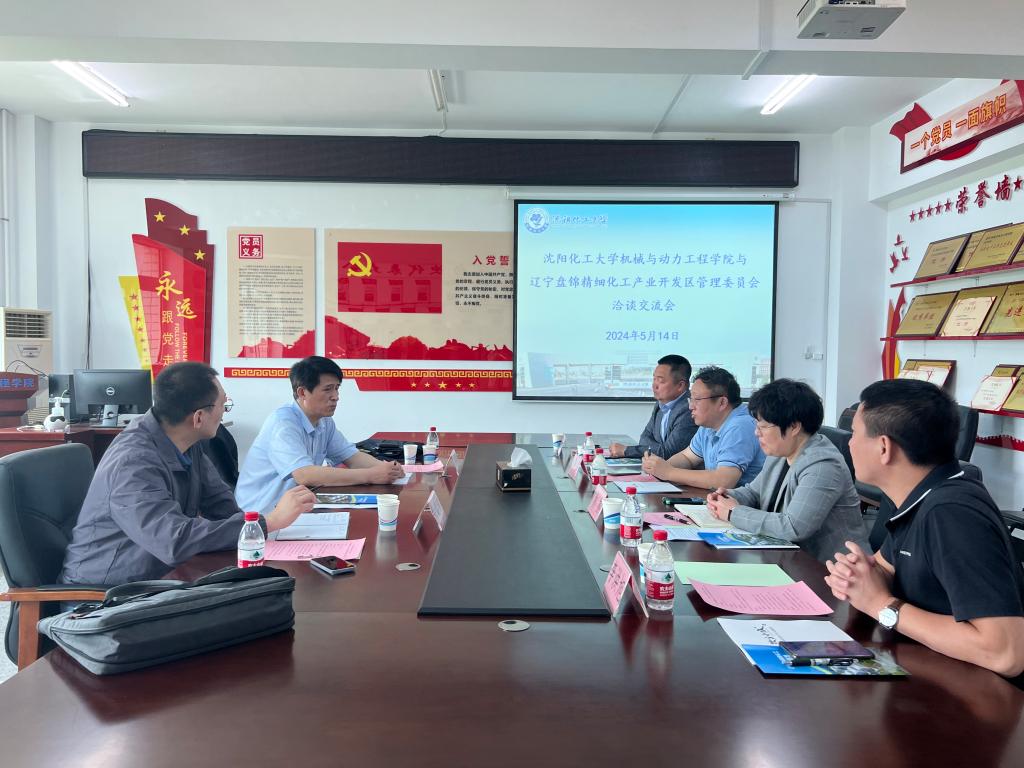 5月14日,辽宁盘锦精细化工产业开发区招商局局长刘振利一行到beat365机械与动力工程学院进行洽谈交流,机械与动力工程学院领导班子成员参会。