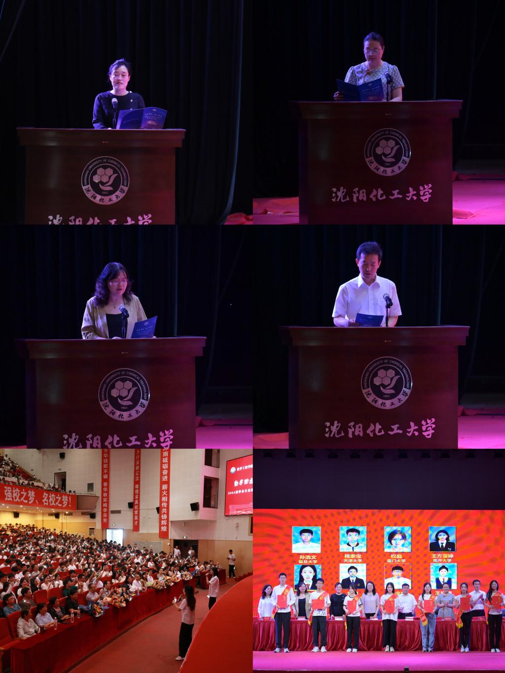会议在庄严的国歌声中拉开帷幕。孟野、杨海霞、林艳新、王立刚分别宣读“2024届辽宁省优秀毕业生表彰决定”“2024届考取博士研究生表彰决定” “2024届考取硕士研究生表彰决定”和“2024届‘志愿服务西部、矢志化工报国’先进个人表彰决定”,与会领导为受表彰的优秀毕业生颁发荣誉证书,同时激励毕业生们在未来的学习和工作中,继续保持积极进取的态度,不断追求卓越。