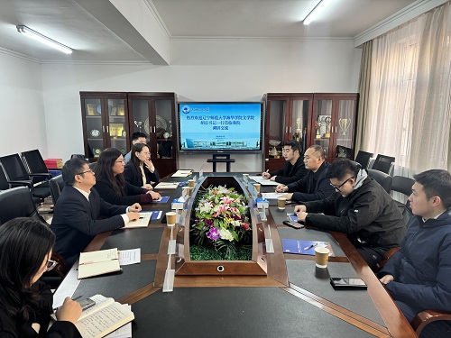 1月10日,辽宁师范大学海华学院文学院党总支书记兼副院长胡京一行到beat365国际教育学院调研交流,国际教育学院直属党支部书记、院长王春雨,副院长王亮、副院长杨博及相关教师参与交流活动。
