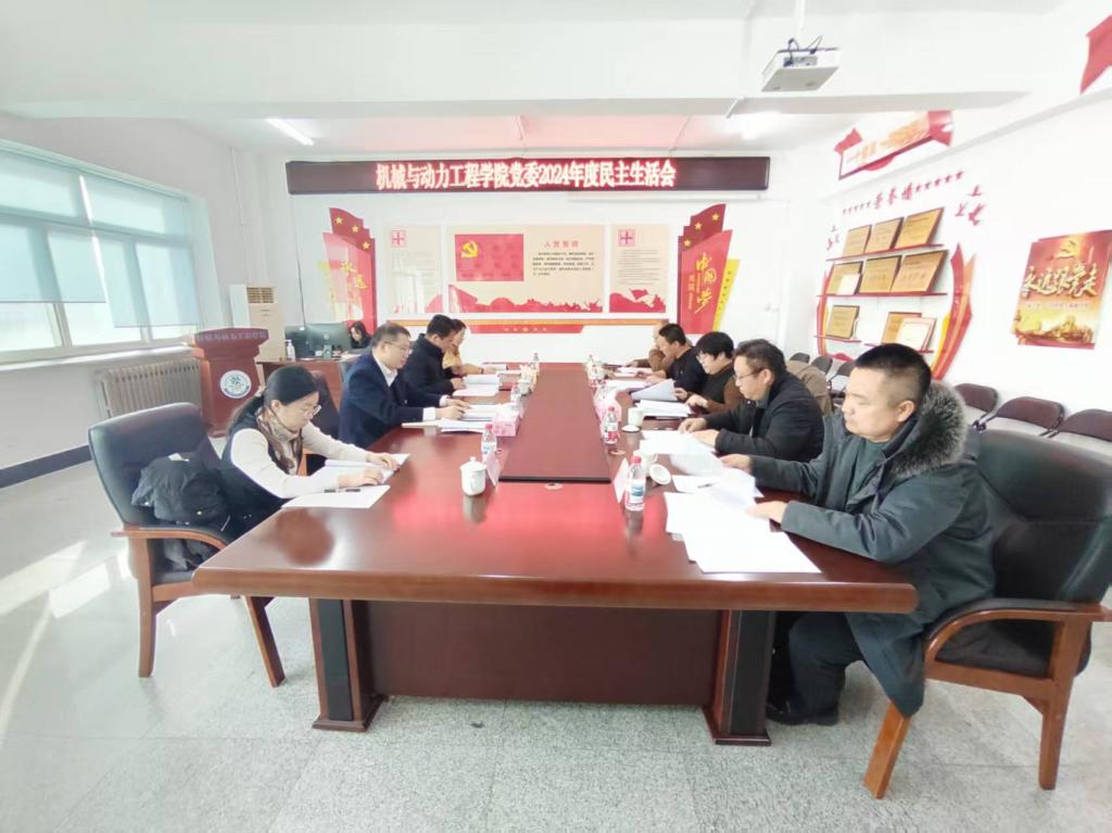 2月25日,机械与动力工程学院在致本楼D座317室召开民主生活会。学校党委常委、副校长王树荣,学校党委督导组到会指导。学院党委书记林燕主持会议,学院党委领导班子成员参加会议。